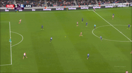 足球日报11月09日播报讯 桑德兰vs阿森纳第54分钟,桑德兰后场出现失误,赖斯将球断下,埃泽分球,梅里诺直塞助攻,萨卡打近角破门!